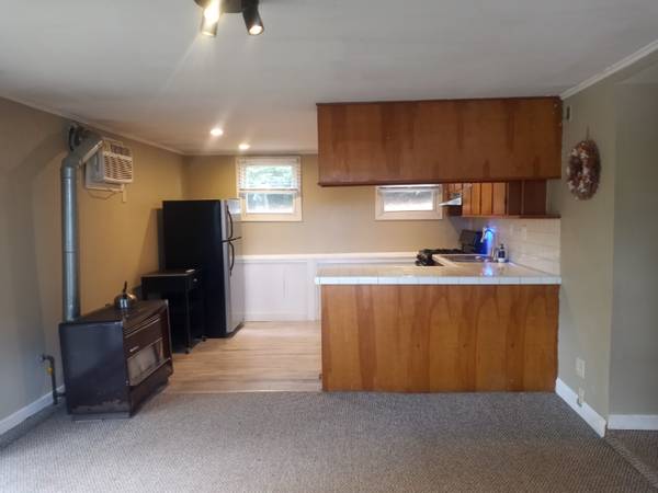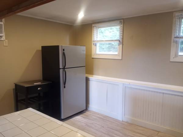 Fall River – Great 1 bedroom apartment. ALL UTILITIES INCLUDED! Off Highland Avenue on Valentine Street. Very quiet area! Mostly single family homes. The apartment has a private entrance and a sliding door to a private deck, exclusively used by only that apartment. Large living room, open floor plan into Kitchen. Nice amount of cabinets and a Stainless Steel refrigerator and gas stove. Built in wall AC unit. The bathroom has a granite sink top and floor to ceiling shelves, so lots of storage! Hallway has a very large closet and a built in bookcase. Good sized bedroom with Berber carpet and a full closet. Rent is $1150/month and INCLUDES heat, hot water, electricity and gas cooking. Located near the highway and the new T-station, it provides easy access to transportation. First and last upfront. Feel free to reply with your phone number and I will call and answer any questions you may have.