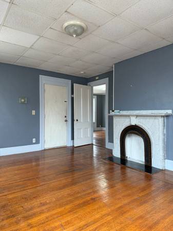 This inviting one-bedroom, one-bath apartment offers a comfortable living space with hardwood floors throughout and high ceilings that create an airy, open feel. A charming decorative fireplace adds a cozy touch perfect for relaxing evenings.