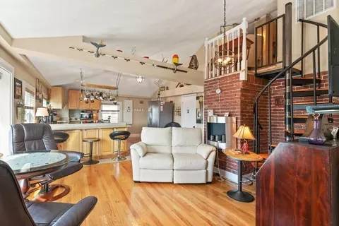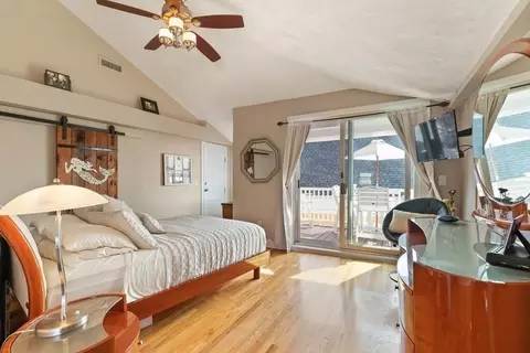 Perfect year round or Summer/vacation condo getaway with HARBOR VIEWS!. Close to Pavillion Beach, Stacy boulevard ,downtown restaurants/shops, Stage Fort Park and Beauport Hotel. Everything you want to do is within close proximity! Plus this beautiful condo has all been redone. When you enter you are instantly greeted by the fabulous fully applianced kitchen with maple cabinets, granite counters & tile floors. A breakfast bar seats 3. It is all open so from the dining room table and kitchen you can also view the harbor. Modern tile bath! The living room/dining room combo is open and light w/vaulted ceiling! Staircase leads to the loft/guest sleeping quarters. Main bedroom with own walk-in closet leads to private covered deck with harbor views and enough seating for a party of 4 for dinner & drinks. In unit Washer/Dryer. 1 car parking off street!