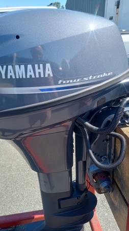 Yamaha 2015 9.9 HP Model # T9.9XPHB outboard motor. This is a long shaft, high thrust engine with power tilt, power trim and electric start. This engine has low hours and is in excellent mechanical condition. There are a few scuffs on the outside and some minor rust stains showing. The engine was just serviced by a factory trained Yamaha mechanic at a boatyard that is also a Yamaha dealer. All fluids have been changed, all filters replaced, water pump kit installed spark plugs replaced and new propeller installed. All parts are genuine Yamaha replacements. This is an excellent opportunity to own a great motor for any boat, especially a sailboat at half the price of a new one. Included is a 3 gallon fuel tank. Can be seen running in South Dartmouth, MA. If the ad is up the motor is available.