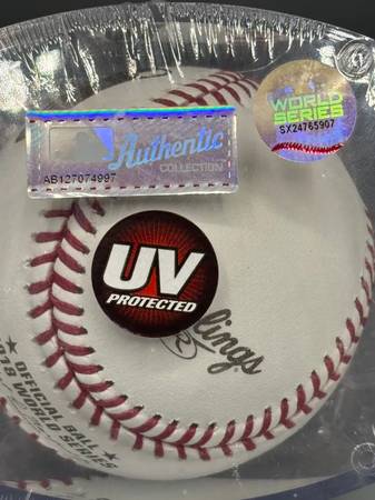 in brand new condition. Baseball still in its original wrapped enclosure and a Ultraviolet (UV) protective sealed case. Comes with registered trademarks stamps on baseball and case. Baseball depicts MLB world Series 2018 official stamp, signature of Baseball Commisioner, Rawlings stamp, and the trademark of Boston Red Sox with scores of all 5 games versus the Los Angeles Dodgers. Case shows Authentic Collection seal #AB127074997, World Series stamp #SX24765907, writings "the Mark of a Pro" and Official game ball of Major League Baseball". Great gift for collector, sports enthusiast, etc.