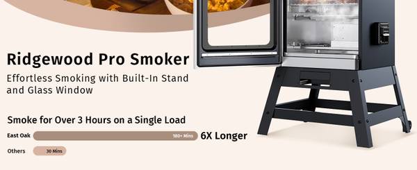 FEWER REFILLS, MORE FLAVOR – With 6× longer smokes per load, you get uninterrupted smoking sessions that lock in flavor and bark. No need to constantly open the door or reload chips—just set it, relax, and let this electric smoker do the heavy lifting