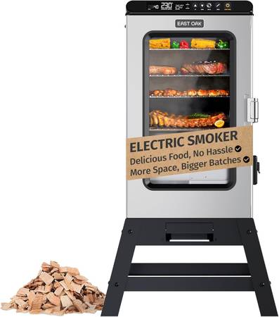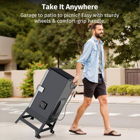 ALWAYS COOKED TO PERFECTION – Large viewing window with the built-in meat probe tracks internal temperature in real time, so you know exactly when your meat is ready — no opening the door, no drying it out, no second-guessing. This meat smoker even stops automatically and switches to keep-warm mode when your target temp is reached