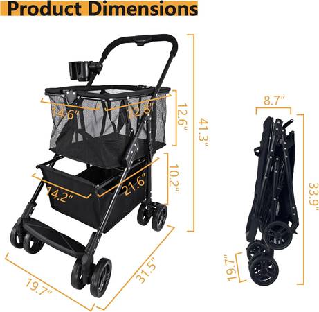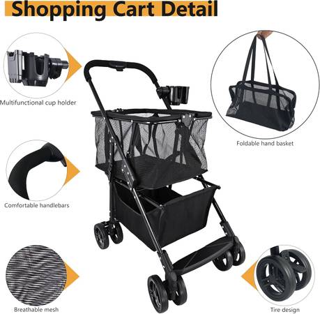【Upgraded 36-Gallon Capacity】: This multi-use shopping cart features a 36-gallon capacity, perfect for a week's worth of groceries. The foam handle provides a comfortable, non-slip grip for an easy shopping experience.