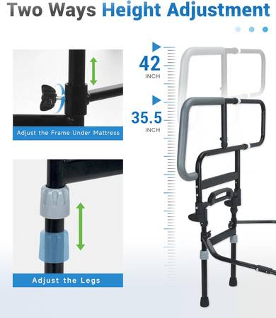 Adjustable Height for Personalized Comfort – The bed rail’s height adjusts from 35 inches to 42 inches, ensuring a secure fit for different users and bed configurations while offering optimal support when getting in and out of bed.