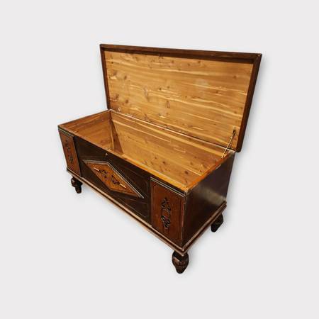 Antique Solid Wood Hope Chest that is over 100 Years Old & Locally Built. Has been kept within my family during that time and safely stored and maintained in amazing condition. The chest measures 25''h x 19"w 45"L. If you have any questions please just let me know and I'll get right back to immediately. Fair offers will be heard. Thanks!